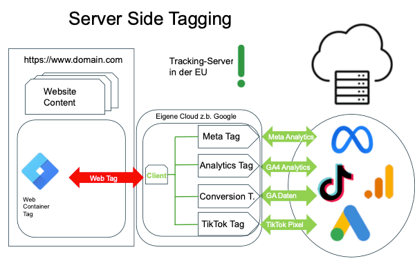 empfehlen wir das Server Side Tagging, welches über den Google Tag Manager aufgebaut und
